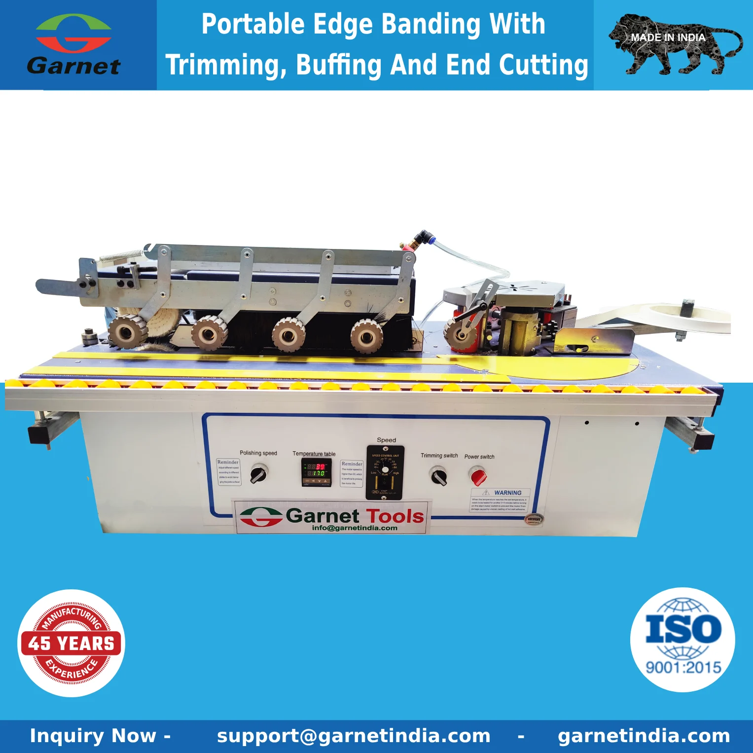 Portable Edge Banding machine with functions to make edge banding along with gluing, trimming, buffing and end cutting systems. This makes the finish of the edge banding on the plywood, MDF or related clean. The Portable Edge Banding Machine with Trimming and Buffing and End Cutting is suitable for users looking for finish like an industrial edge banding machine but needed for startup or low production or for site work.